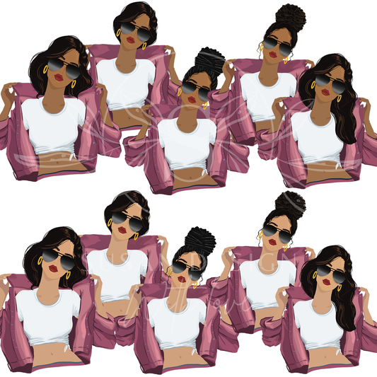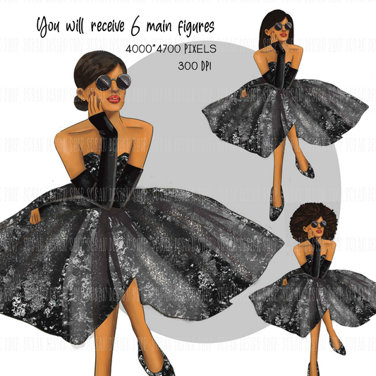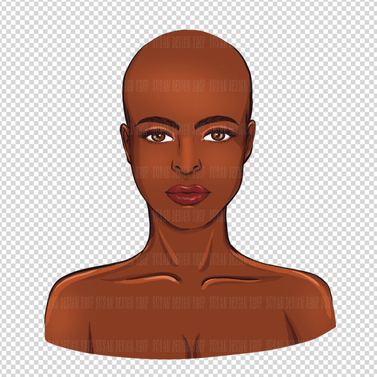 Fashion Black Women Bald Hairstyle clipart bundle, PNG sublimation