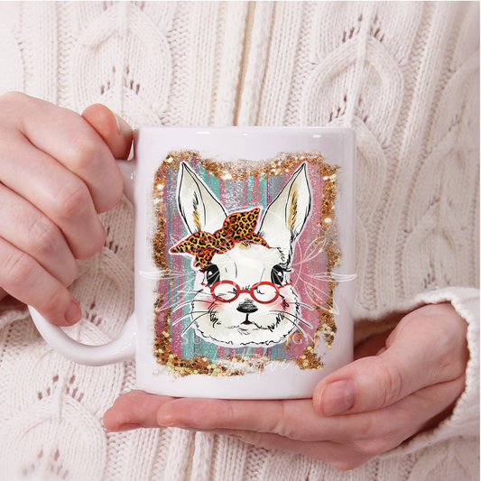 Easter Girl Bunny Leopard with Glasses PNG Sublimation