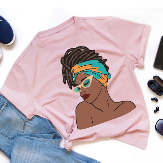 Fashion black woman afro locs messy bun girl in denim clipart bundle, PNG sublimation