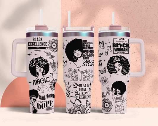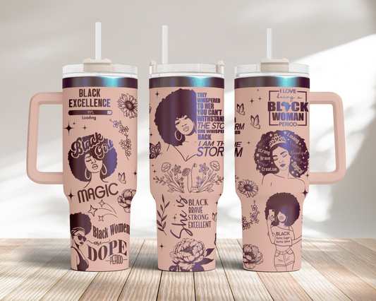 Black Woman Affirmation 40oz Tumbler SVG Laser Engraved Full Wrap Seamless, PNG sublimation