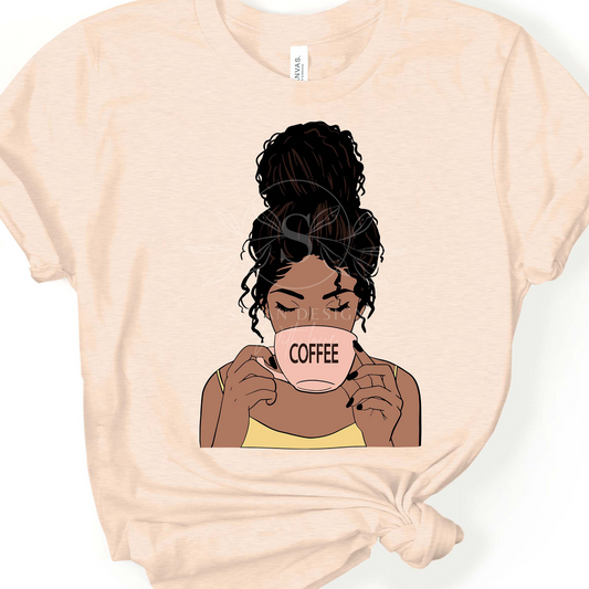 Afro girl with Messy Bun Coffee Cup/Mug Layered SVG bundle