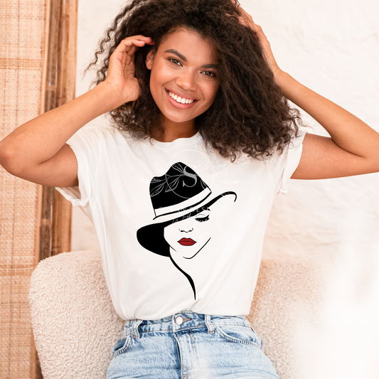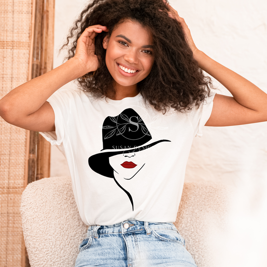 Black Woman Classic Look with Hat eyelash red lip SVG