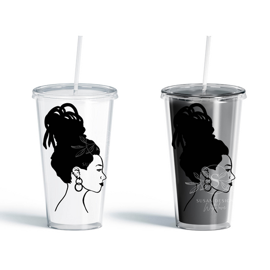 Afro girl with Messy Bun Sunglasses and hair tie Layered SVG bundle