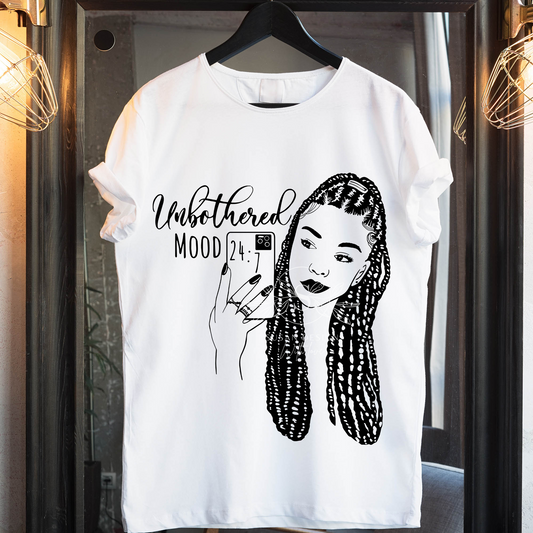 Unbothered 24/7 Braid Black woman with Cell Phone Selfie SVG Black and White