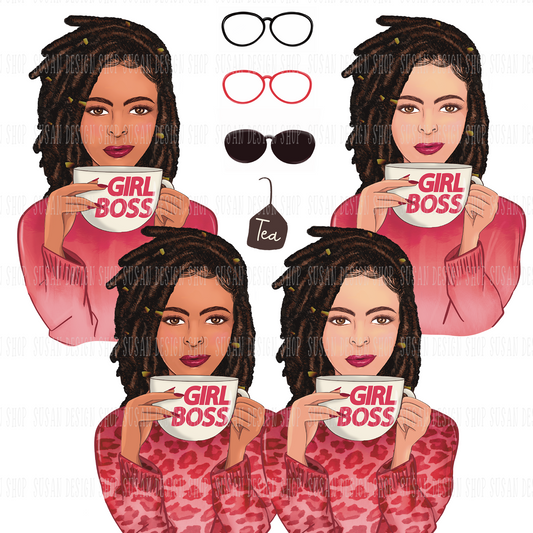 Boss Babe, Girl Boss, in Pink Leopard cappuccino drink Coffee Tea PNG clipart bundle, PNG sublimation on tumbler, sticker, digital planner