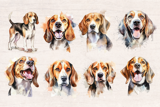 22 Watercolor Beagle Dog and Puppy PNG cliparts bundle, Dog lover Cliparts