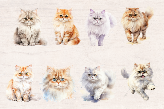 25 Watercolor Persian cat PNG cliparts bundle, Cat lover Cliparts