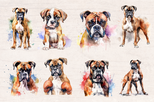 24 Watercolor Boxer Dog and Puppy PNG cliparts bundle, Dog lover Cliparts