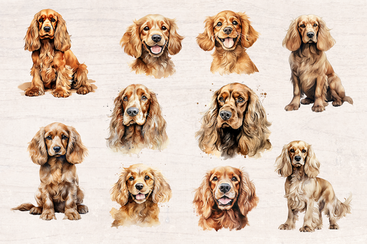 24 Watercolor Cocker Dog and Puppy PNG cliparts bundle, Dog lover Cliparts