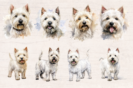 24 Watercolor White terrier Dog PNG cliparts bundle, Dog lover Cliparts