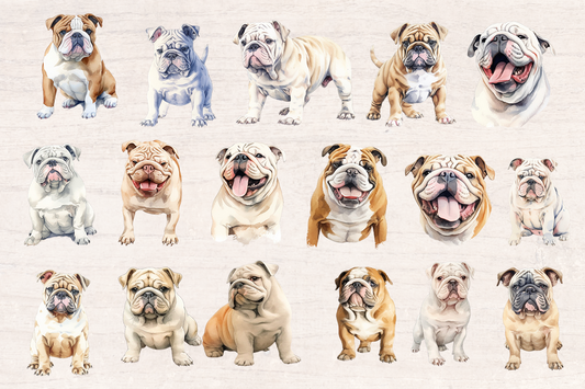 34 Watercolor Bulldog Dog and Puppy PNG cliparts bundle, Dog lover Cliparts