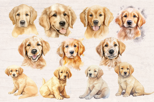 22 Watercolor Golden Retriever Puppy PNG cliparts bundle, Dog lover Cliparts