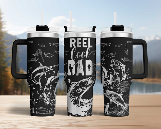 Reel Cool dad, Fishing dad SVG 40oz Tumbler Laser Engraved Full Wrap Seamless, SVG Laser Rotary, PNG sublimation